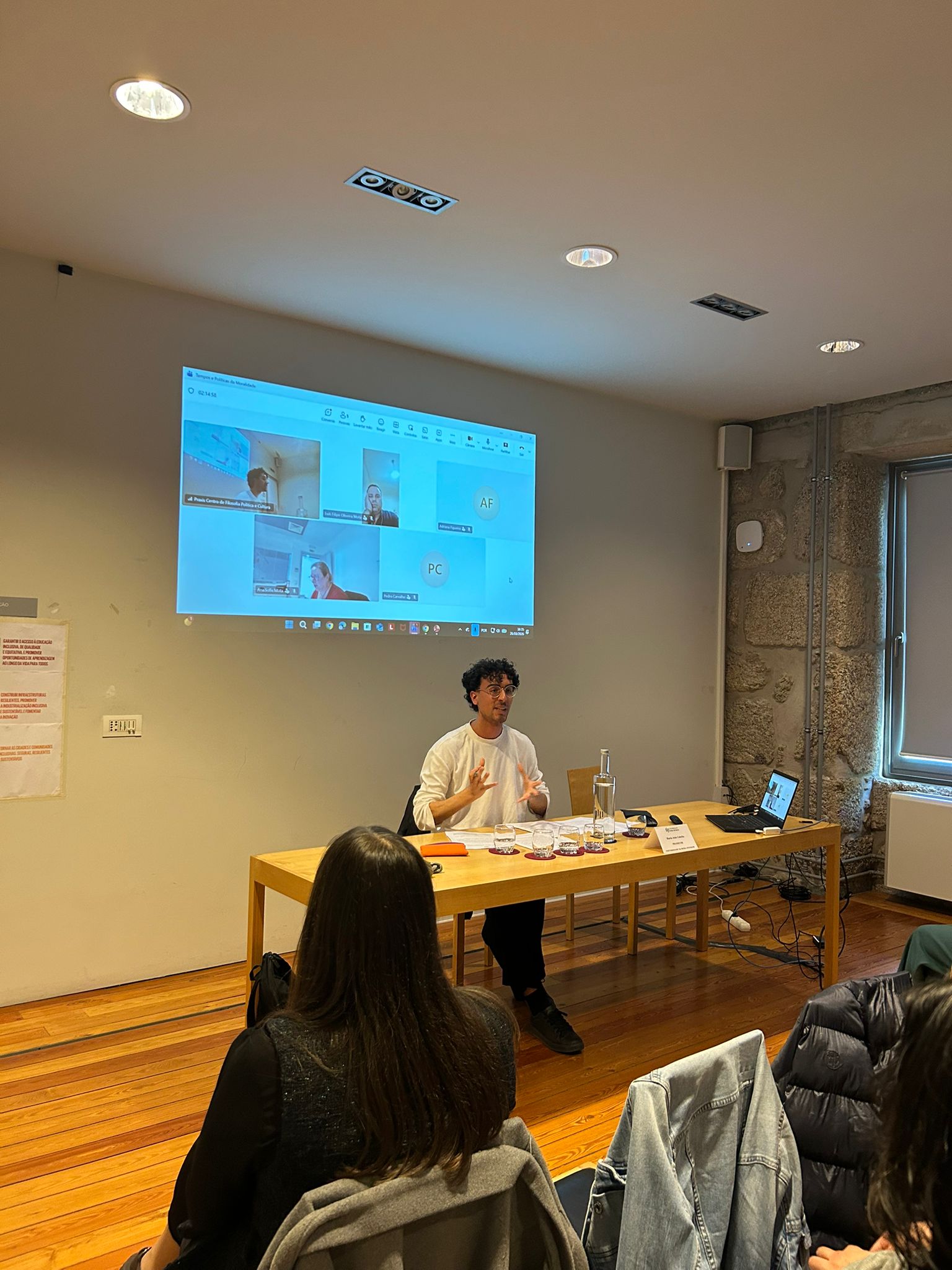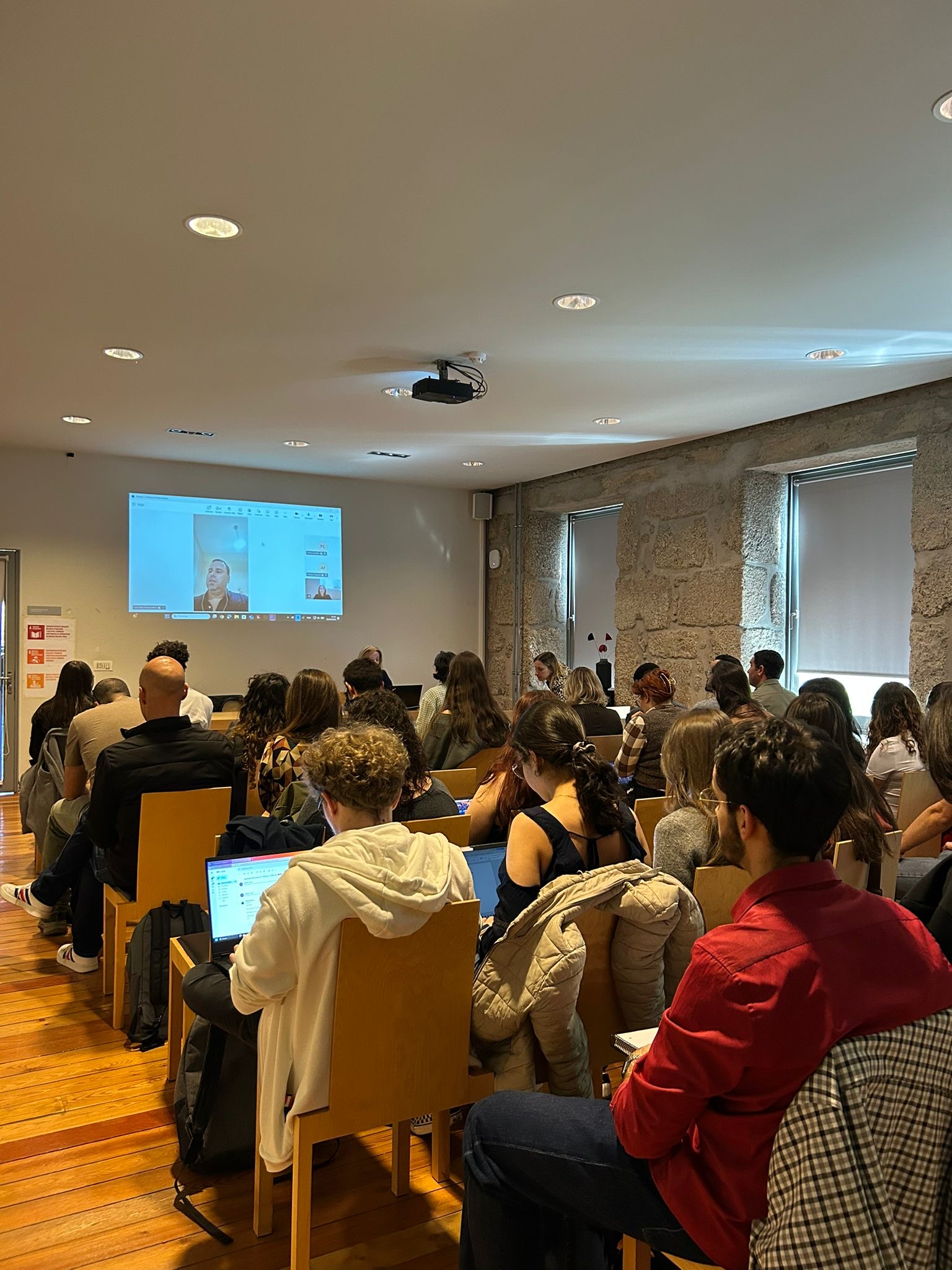Seguidamente, apresentou Jorge Tabuada (ISCTE-IUL), ativista pelos direitos LGBTQIA+, sobre “Políticas LGBTQIA+ em Portugal: desde o 25 de abril até à atualidade”. A sua intervenção partiu de uma reflexão sobre a atualidade política, marcada por sinais de retrocesso em direitos recentemente conquistados, sublinhando a importância de continuar a discutir estes temas num contexto em que persistem formas de discriminação e o aumento da desinformação e discurso de ódio, tanto em Portugal como a nível internacional.