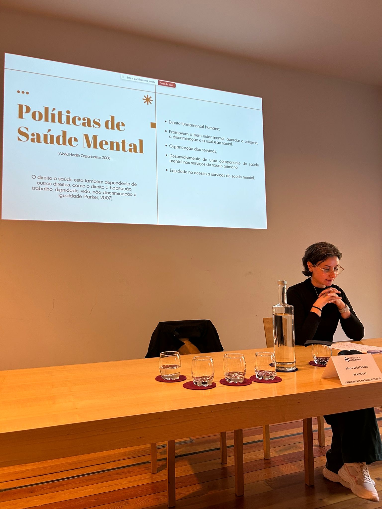 A sessão final, “Políticas de Saúde Mental LGBTQIA+: moralidade e estigma”, foi conduzida por Joana Casimiro (Universidade de Aveiro). Partindo da assunção de que não existem políticas de saúde mental em Portugal para estas comunidades, a sua comunicação problematizou a quase ausência de respostas estruturadas para estas comunidades, sublinhando o impacto de formas de estigma interseccional e de duplo estigma na procura e no acesso a cuidados de saúde adequados.
